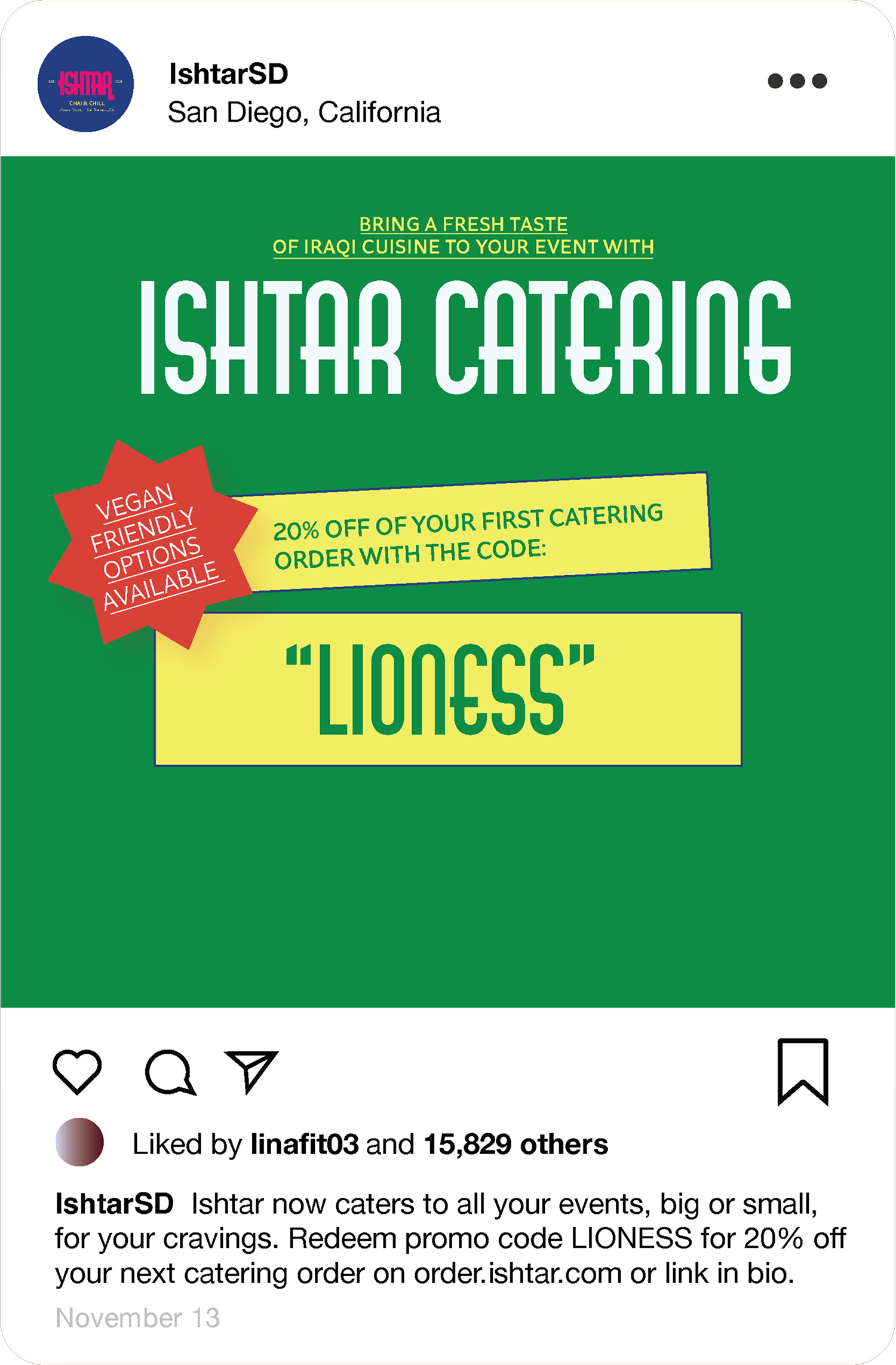 Ishtar is a contemporary Iraqi chai and food restaurant in San Diego’s South Park neighborhood. Unlike traditional Iraqi restaurants, Ishtar modernizes the dining experience with a fresh take on Iraqi cuisine. Targeting a crowd aged 18-24, it combines authentic flavors with a modern atmosphere, offering a unique space in a vibrant, eclectic neighborhood.